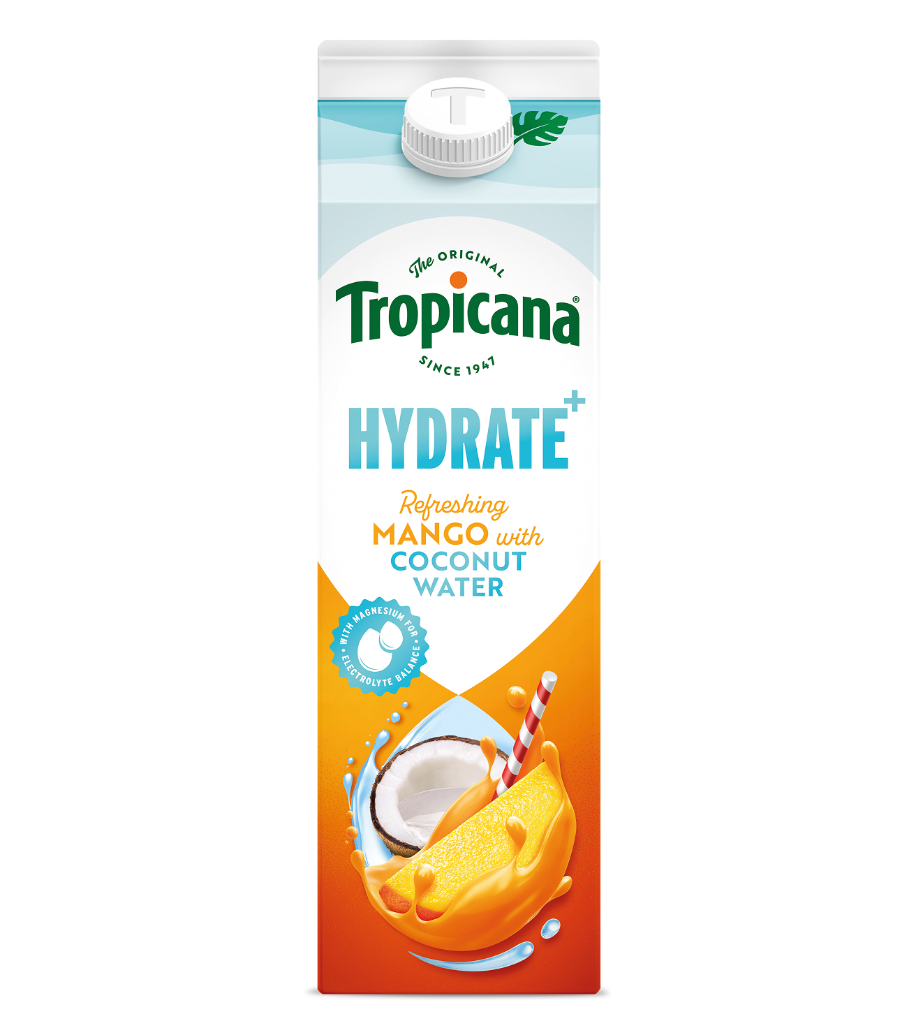Tropicana Hydrate+ is a deliciously refreshing blend including Mango & Coconut Water boosted with magnesium to contribute to your electrolyte balance and with added vitamins C, E, B1, B2 and B6. Perfect for tasty, convenient daily enjoyment.