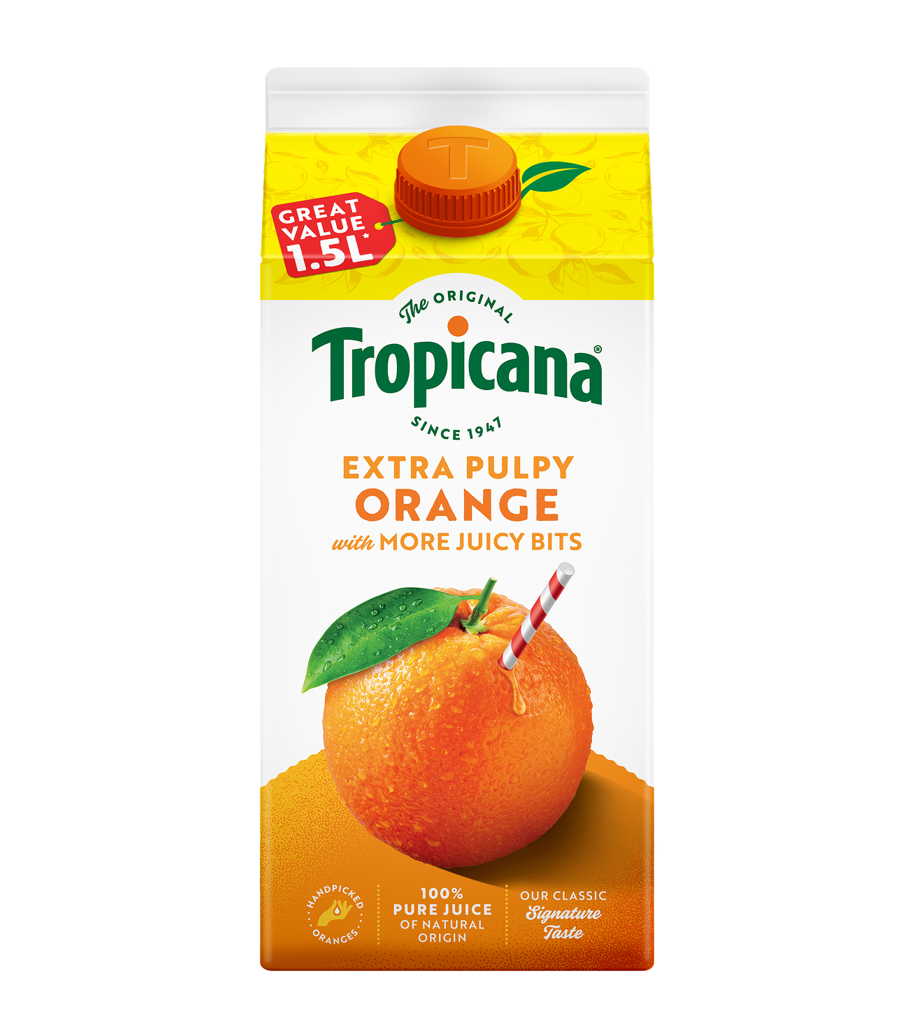 It’s THAT classic taste but with more juicy bits. Extra pulpy orange juice, with more Juicy Bits. THAT iconic taste in a 1.5L carton. Sometimes having THAT something is having THAT nothing. No added sugar* - just 100% pure pressed fruit juice, not from concentrate.