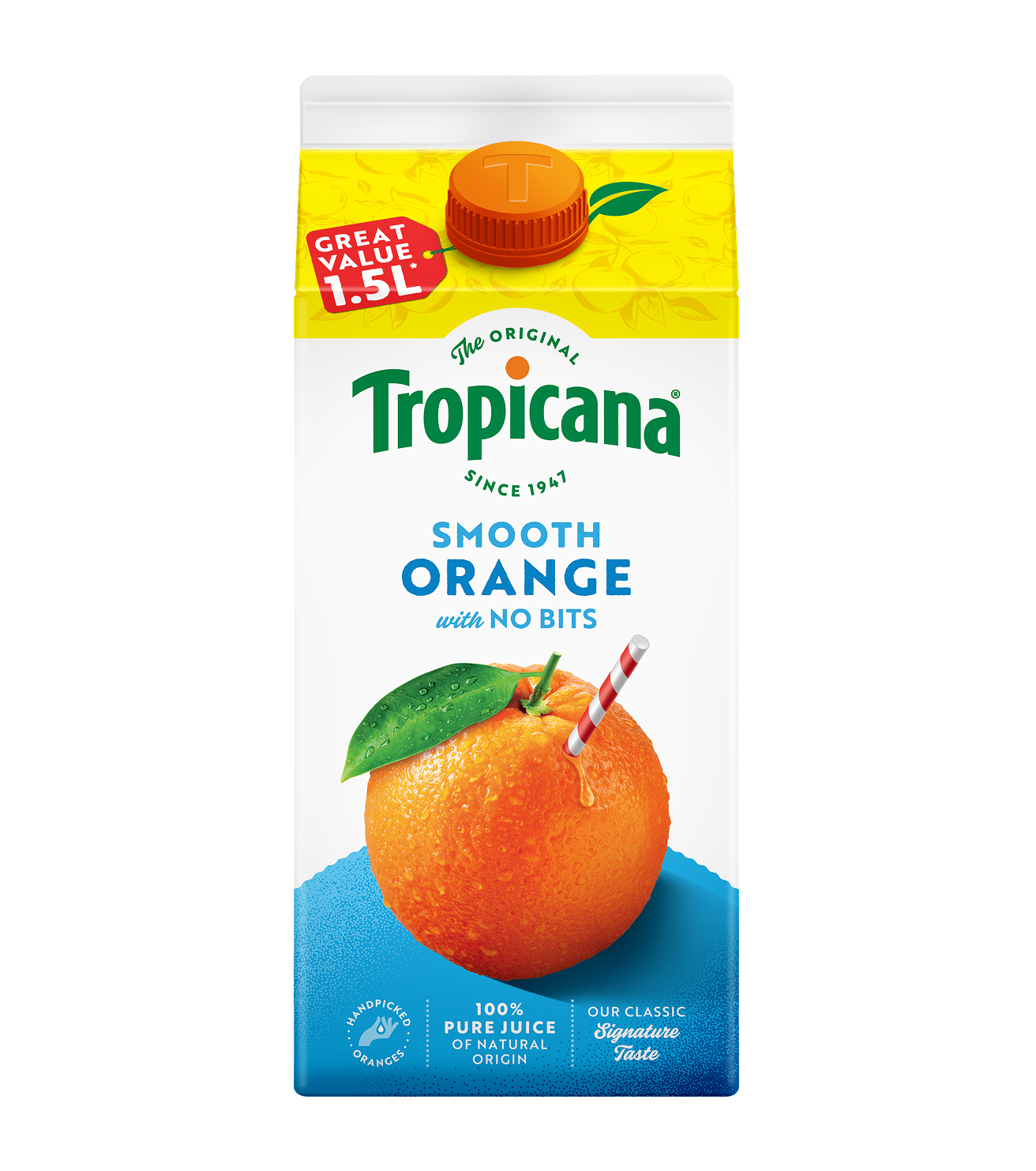 Our oranges from sun-drenched groves are hand-picked at THAT right moment, and squeezed within 24 hours for THAT fresh flavour. It’s THAT Smoo-oothness. Tropicana, It’s THAT juice. Plus, each 150ml serving contains 1 of your 5 a day, and 53% of your recommended daily Vitamin C intake, which contributes to the reduction of tiredness and fatigue.