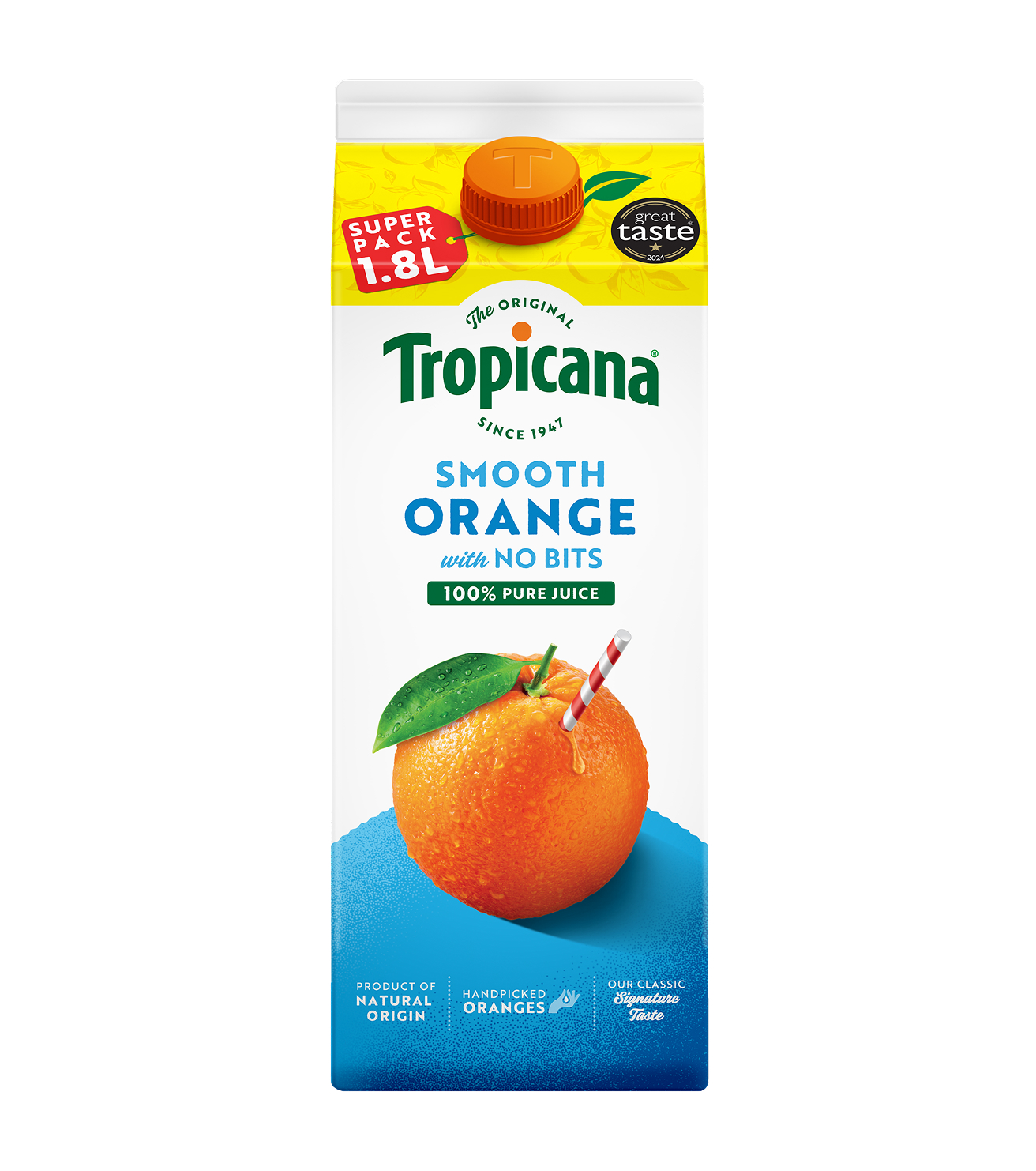Our oranges from sun-drenched groves are hand-picked at THAT right moment, and squeezed within 24 hours for THAT fresh flavour. There are 60 varieties of orange, and only 4 of them make the squeeze for THAT juice - crafting THAT fresh, juicy, Tropicana signature taste you know and love. It’s THAT Smoo-oothness. Tropicana, It’s THAT juice. Plus, each 150ml serving contains 1 of your 5 a day, and 53% of your recommended daily Vitamin C intake, which contributes to the reduction of tiredness and fatigue. *Enjoy Tropicana as part of a varied and balanced diet and healthy lifestyle. Like all other fruit juices, contains naturally occurring sugars.