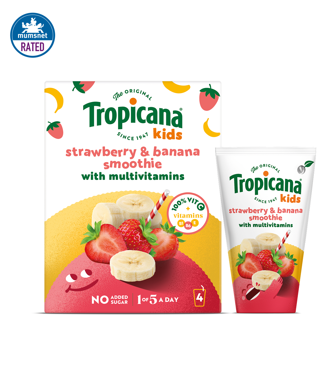 It’s THAT tasty on-the-go Smoothie. Give them 1 of their 5 a day with Tropicana Kids Strawberry & Banana Smoothie.